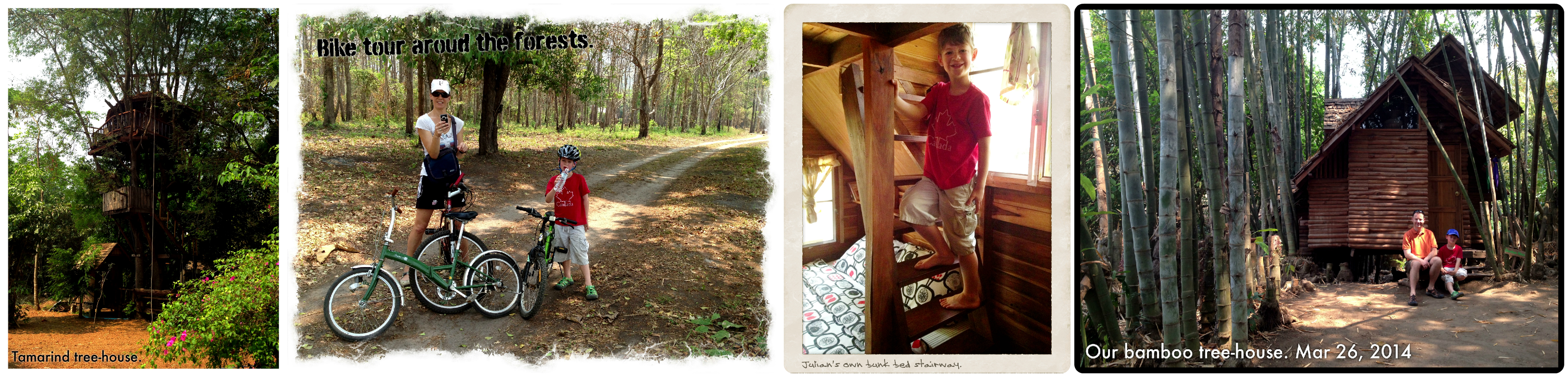 Rabeang Pasak Tree House. Sarah Shafer suggested we try this place. So glad she did. The tree house is about a 1 ½ hour drive from Chiang Mai. We left at 8:00 in the morning, explored a waterfall along the way and arrived by 10:00. We were the only people staying in the property that day so we were given the choice of which tree house we wanted. Each tree house has it’s own unique features, from being high up, to having a roof-top patio. We choose the bamboo house because of the loft bed and the “private” natural spring pool patio. Bikes are free to rent and you can easily spend 4 or 5 hours following marked trials to explore stalactite caves, bat caves, waterfalls etc. Mr. Lee the manager is very hospitable and super friendly. Breakfast, lunch, and dinner are all available on demand, though you can also bike down to the village, five or six houses really and purchase some street food from there as well. If you are with kids a day and a half is sufficient before the peace and quiet starts to get to you and you run out of things to do. A great way to relax and explore the mountains around Chiang Mai at your own pace. Definitely a stress free experience.